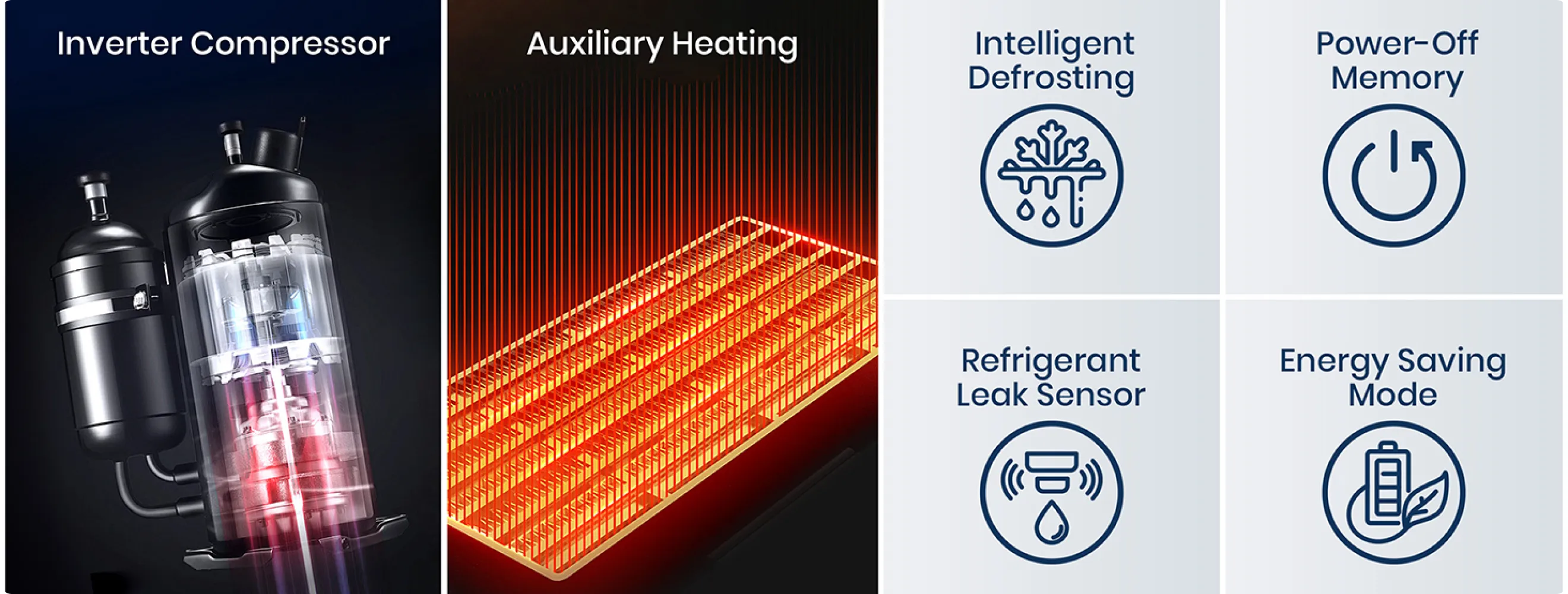 Includes remote for convenient operation; switch between cooling, heating, dehumidifying, and 7-speed fan modes for year-round comfort; sleep mode and timer for personalized settings